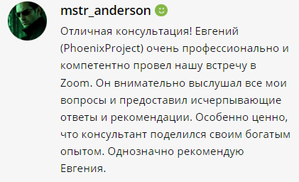 Каждый отзыв подтверждает эффективность моих рекомендаций и стратегий.